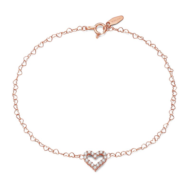 | WR10014B | 可选择18K金或铂金 | 14分 | 约1克(18K金) | 心形宽约8.8mm,高约7.6mm,手链总长约19cm | 中国GTC |