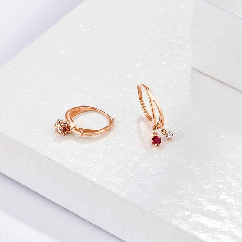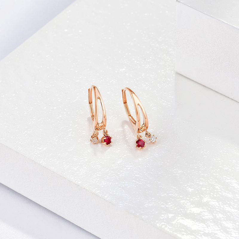 | WRU10005E | 18K金 | 红宝石共12分,钻石共4分 | 约1.5克 | 宽约5.4mm,高约18mm | 中国GTC |