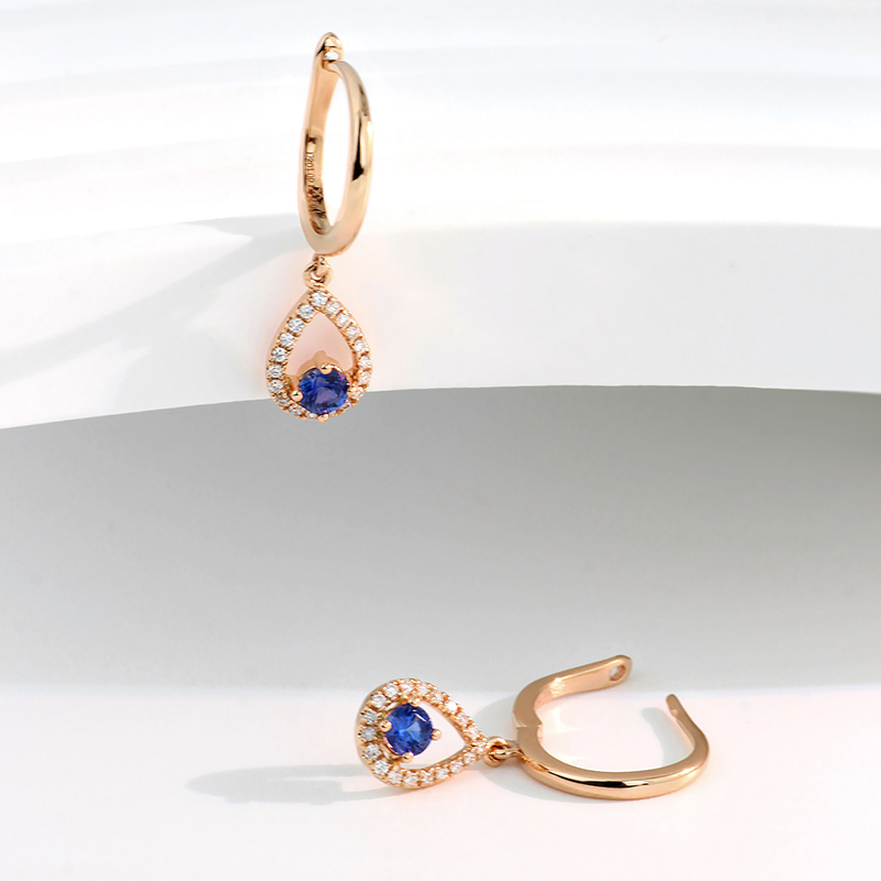 | WS10025E | 18K金 | 蓝宝石共25分,钻石共10分 | 约2.1克 | 宽约6.3mm,高约22mm | 国检NGTC |
