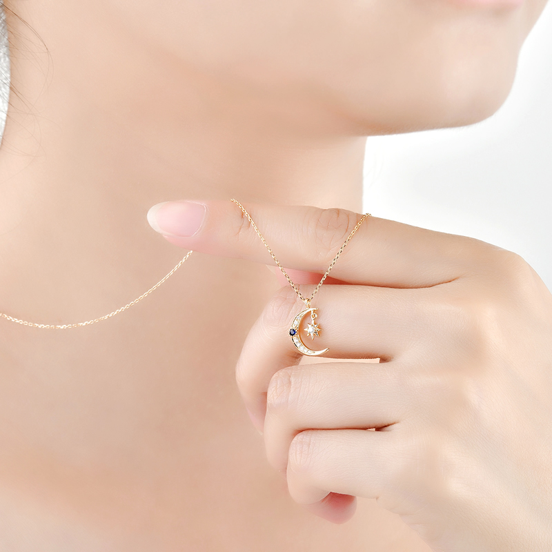 | WR10124P | 可选择18K金或铂金 | 钻石共5分,蓝宝石2分 | 约1.7克(18K金) | 吊坠宽约9.5mm,高约11mm,链长45cm可调节 | 中国GTC |