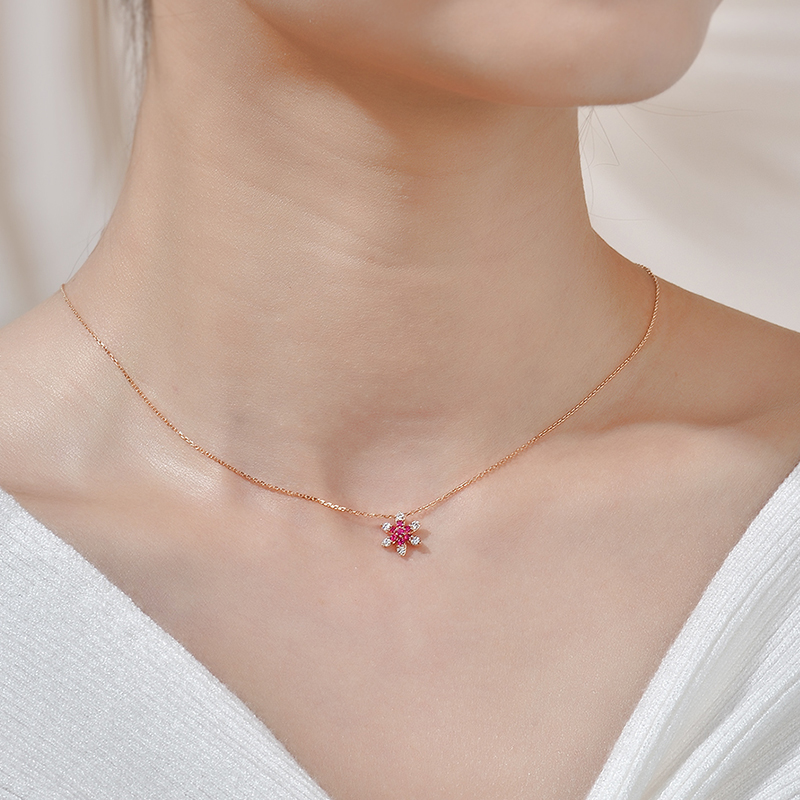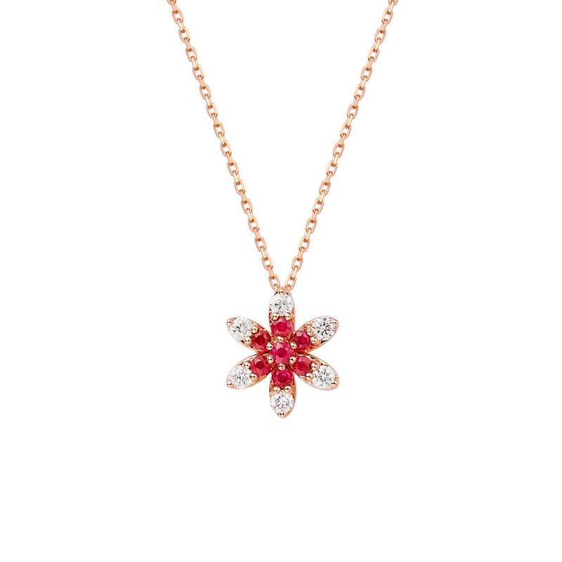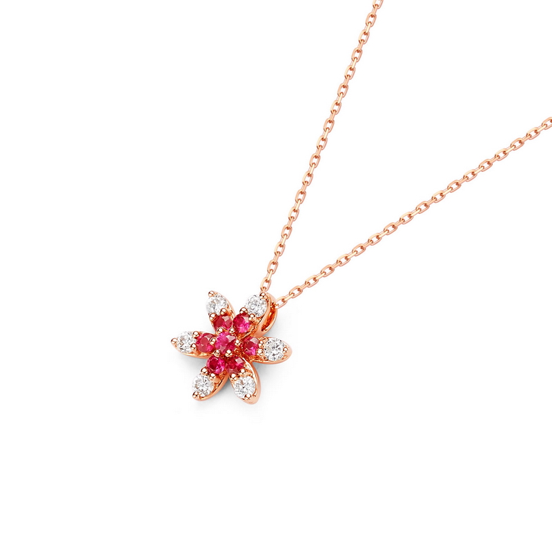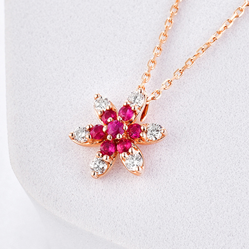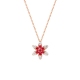 | WRU10008P | 可选择18K金或铂金 | 红宝石共12分,钻石共12分 | 约2克(18K金) | 吊坠宽约8.5mm,高约9.8mm,链长45cm可调节 | 中国GTC |