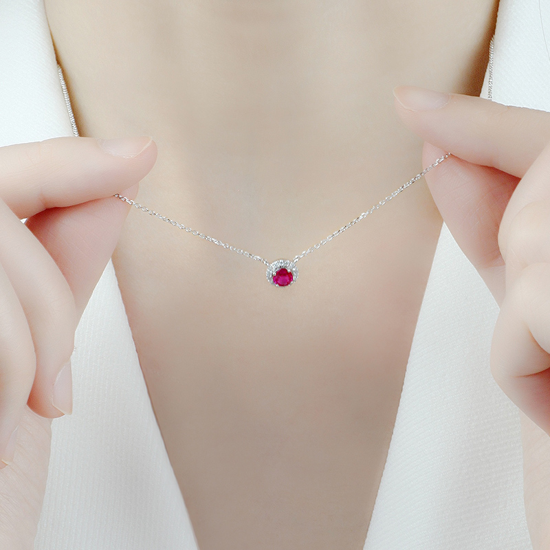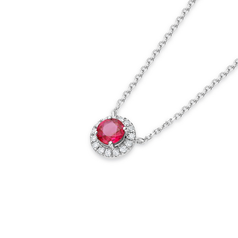 | WRU10028P | 可选择18K金或铂金 | 红宝石25分,钻石共6分 | 约2.5克(Pt950铂金) | 吊坠直径约6.6mm,链长45cm可调节 | 中国GTC |