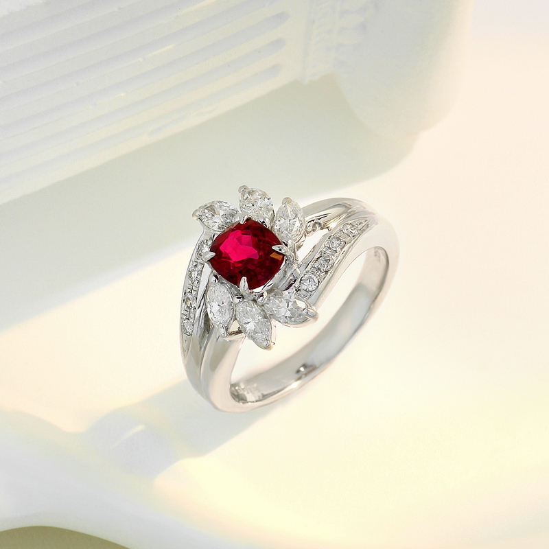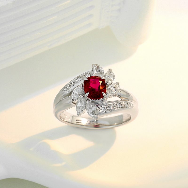 | WRU10045R | 铂金900 | 红宝石1.08克拉(有烧),钻石共1克拉 | 约7.3克 | 戒指正面最宽处约14mm | 中国GTC |
